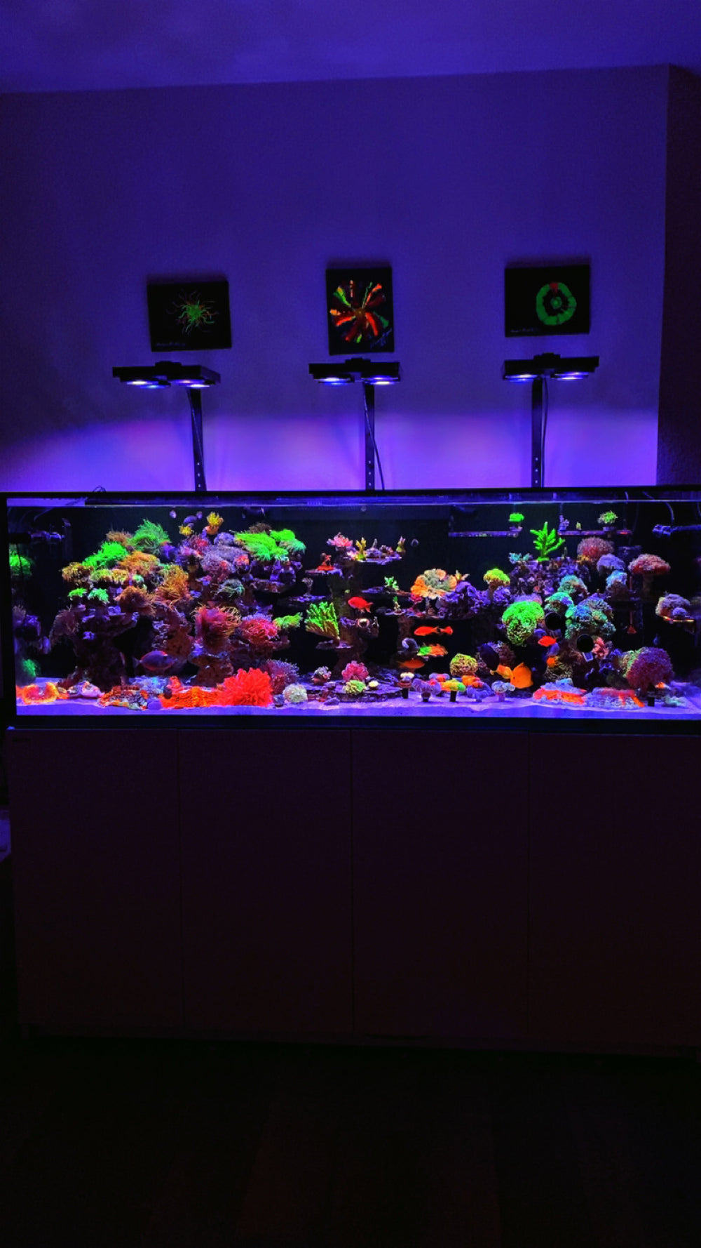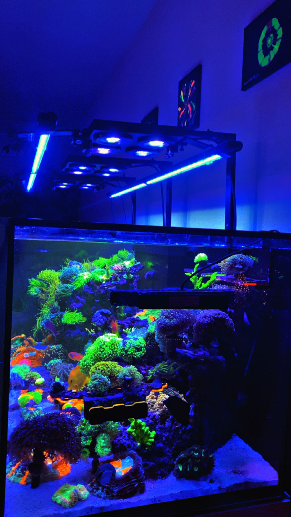 Under intense Illumagic lighting running in full beast mode, the tank is already coming to life. Corals are opening, structure is settling in, and everything is beginning to find its place again — just on a completely different scale.