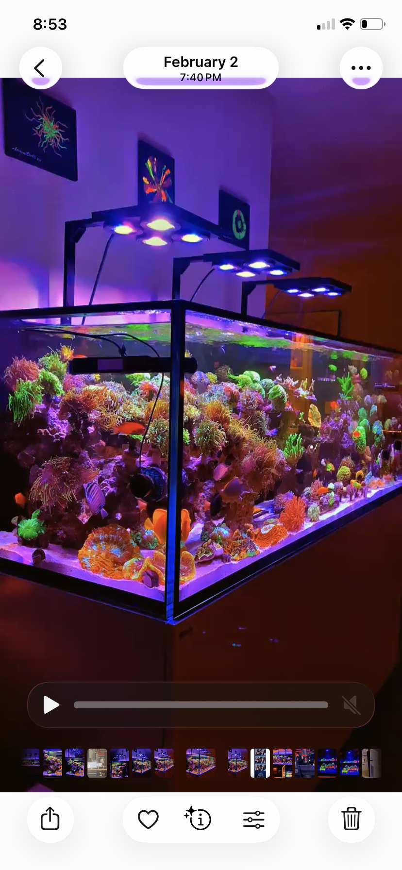 There’s something wild about how fast this system came together. What started as a simple 40-gallon cube back in July 2024 has now evolved into a full 200-gallon mixed reef — upgraded step by step, almost every three months, until it reached this scale.