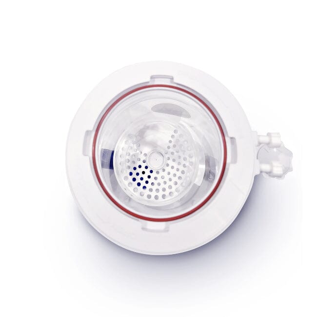 Be very careful when removing the skimmer collection cup. Be sure to twist all the way and lift only when in the unlocked position. Lifting the cup prior to unlocking will break the locking teeth at the base of the cup.